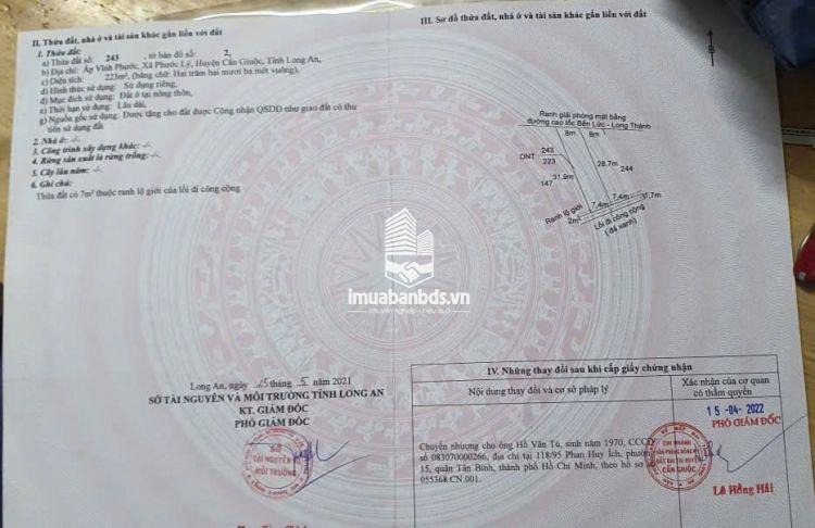 ĐẤT THỔ CƯ ĐẸP - GIÁ TỐT CHÍNH CHỦ BÁN NHANH LÔ ĐẤT 2MẶT TIỀN 223m2 GIÁP BÌNH CHÁNH – Xã Phước Lý, huyện Cần Giuộc, tỉnh Long An (cũ) - phường Phước Lý, tỉnh Tây Ninh(mới)