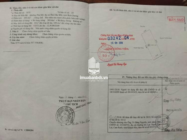 Diện tích đất: ngang 10m x dài 27m= 270 m2. Pháp lý: sổ đỏ chính chủ
