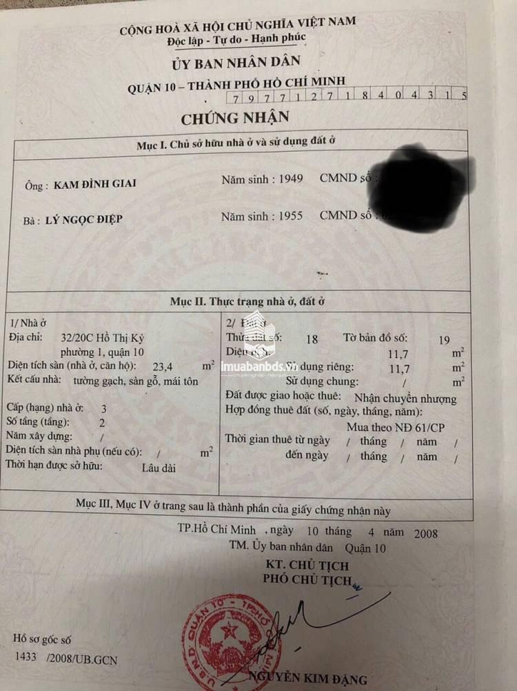Nhà riêng 2 tầng tại Hồ Thị Kỷ, Q10, HCM với thiết kế hiện đại và tiện nghi. - Cấu trúc: 2PN + 1WC + bếp - Diện tích: 12m² - Hướng cửa chính và ban công: Đông Bắc - Mặt tiền 4m, phù hợp cho việc kinh doanh hoặc cho thuê Giá: 2,38 tỷ VND, pháp lý đầy đủ, phong thủy tốt giúp gia chủ an khang thịnh vượng. Khu vực xung quanh tiện lợi với nhiều dịch vụ: + Bệnh viện Da Liễu TP.HCM, Bệnh viện Nhi Đồng 1 + Công viên Âu Lạc, Công viên Hòa Bình + Siêu thị Mẹ Bầu & Em Bé Con Cưng, Winmart+ + Trường Mầm Non Sóc Nâu - Quận 10, Phuong Nam Education